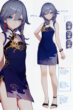 multiple views,pencil sketch,(sketch:1.25),(little girl,small breasts,),((no shoes)),shy,best quality,graphite \\(medium\\),ske,gradient,rainbow,note,Line draft,highres,absurdres,(ultra-detailed:1.1),(illustration:1.1),(infographic:1.2),pajamas,(all clothes configuration:1.15),(solo),perfectly drawn hands,standing,cohesive background,paper,action,(character design:1.1),<lora:qingyan-v100-000022:0.8:lbw=OUTALL>,qingyan,1girl,fu hua,chinese clothes,blue eyes,short china dress,lhair ornament,black hair,bangs,bare hands,sleeveless,blue eyes,<lora:nai3lora:0.4>,nai3,