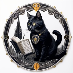<lora:graphic badge:1>,(graphic badge:1.5),original, extremely detailed,book, cat, hat, monochrome, holding, no humans, holding book, standing, reading, witch hat, tail, grass, open book, greyscale, animal, simple background, white background, pouch, animal ears, belt, cape, cat ears, cat tail, solo, animal focus