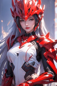 1 girl, science fiction armor,red armor,half body,
