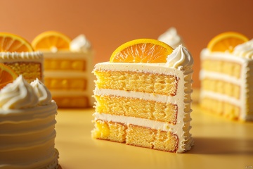 naiyou, No humans,Mid to Long Range, food, cake, food focus, blur, still life, multiple cake slices, diagonal composition, depth of field, Studio shooting,orange theme, blurry background