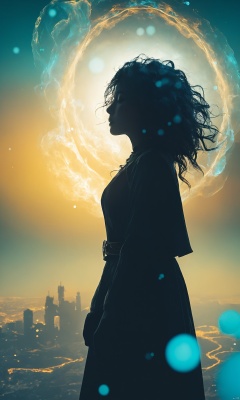 1girl, (from side), (silhouette:1.2), profile, big hair, masterpiece, best quality, light particle, depth of field, field, scenery, fantasy, indigo light, (far away:1.1), cute girl, midriff, tribal sash, pastel colors, chromatic aberration, glow in the dark dark, cloudy sky, space, orange aura, aura, cinematic, dark atmosphere, night , dark hole, glowing eyes, teal light, illumination, light rays, eye in the sky, (grass:0.9), falling petals, oniric portrait of a tall cloaked figure with a white mask, Azem the Traveler, yearning to explore the ends of the world to discover its wonders and help its denizens, by Andy Kehoe, a gradient masterpiece, blue cyan yellow, Rococopunk, luminism, seamless, China ink, Ink Bubbles, Gold leaf lines, alcohol ink elements, curved lines, cinematic, realism, chiaroscuro, Shadow play, Gold leaf small lines, bright splashes of alcohol ink puddles, volumetric light, auras, rays of sunlight, bright colors reflect, isometric, digital art, smog, pollution, toxic waste, chimneys and railroads, 3d render, octane render, volumetrics, by greg rutkowski, anime style
