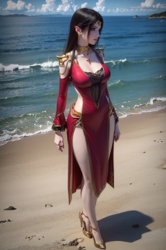 doupo\(meidusha\),dress,1girl,solo,<lora:meidusha_v1:0.7>,full body,absurdres,slender_waist,medium breasts,ocean,