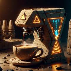 <lora:EgyptTech-30:0.8> egypttech ,scifi, hieroglyphs, sandstone, coffee machine, pouring liquid