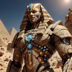 <lora:EgyptTech-30:0.8> egypttech ,scifi, hieroglyphs, sandstone,man, <lora:Gigachadv1:0.5> gigachad, upper body,closeup