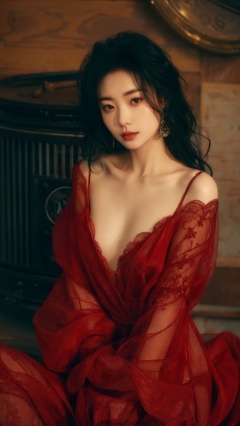 sdmai,hongchen,1girl,solo,red dress,dress,black hair,realistic,looking at viewer,breasts,<lora:SDMAI红尘hongchen:0.7>,