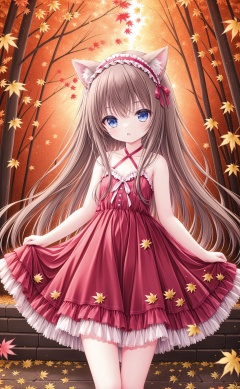 masterpiece,best quality,very long hair,cowboy shot,moinszero,moinszero,moinszero,moinszero,moinszero,moinszero,moinszero,moinszero,moinszero,moinszero,moinszero,moinszero,moinszero,moinszero,moinszero,moinszero,1girl,solo,animal ears,long hair,blue eyes,dress,leaf,looking at viewer,cat ears,maple leaf,red dress,bare shoulders,very long hair,frills,black hair,bangs,autumn leaves,brown hair,hairband