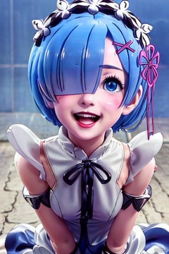 pink ribbon,rem \(re:zero\), LM, 1girl,full body
