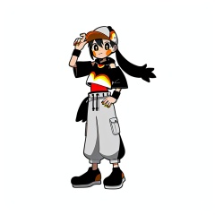 gurin(\style) ,1girl standing, big round eyes, solo,full body, baseball cap, nail polish, Looking at the viewer, black headdress, black wristband, cut of clothes, black and white pants, hand wearing headdress, long hair, shoulder cut, blush sticker, baggy pants, little penguin, white and clean background <lora:gurin V2-25-000026:0.7>