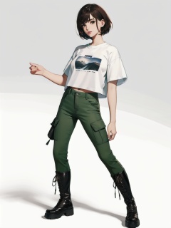 breathtaking (1girl), Cargo pants, cropped t-shirt, and combat boots., korean . award-winning, professional, highly detailed
