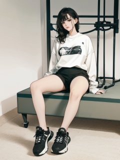 breathtaking (1girl), Oversized shirt, biker shorts, and sneakers., korean . award-winning, professional, highly detailed
