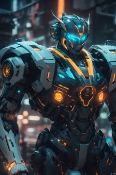 (masterpiece, best quality:1.2),robot,Mecha,Full mecha,Upper body, blurry, blurry background, depth of field, glowing,A multi edged mecha,Black mecha,Luminous camera structure at the shoulder,Facial multiple light sources,Facial resemblance to Transformers mecha,Micro lateral body,Above the buttocks,Multi light source mecha,Luminous mecha, glowing eyes, helmet, mecha, power armor, realistic, robot, science fiction, solo