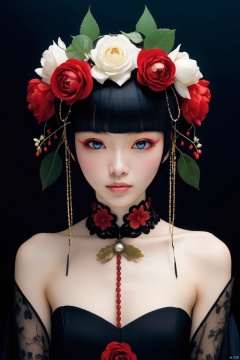 cinematic photo anime artwork anime artwork cinematic photo Gothic style.Hyperrealistic art a woman in a black dress and a flower crown, japanese gothic, takato yamamoto aesthetic, by Rysei Kishida, by Otake Chikuha, eiko ishioka, serge lutens, by Yuko Tatsushima, hana yata, by Yuki Ogura, natalie shau, by Kan Sanraku . Extremely high-resolution details, photographic, realism pushed to extreme, fine texture, incredibly lifelike . 35mm photograph, film, bokeh, professional, 4k, highly detailed . anime style, key visual, vibrant, studio anime,  highly detailed, white rose . anime style, key visual, vibrant, studio anime,  highly detailed . 35mm photograph, film, bokeh, professional, 4k, highly detailed