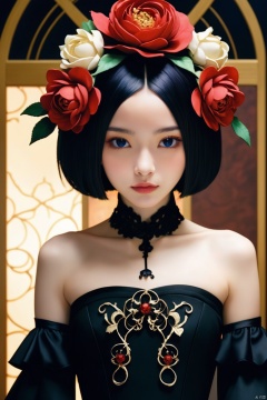 cinematic photo anime artwork anime artwork cinematic photo Gothic style.Hyperrealistic art a woman in a black dress and a flower crown, japanese gothic, takato yamamoto aesthetic, by Rysei Kishida, by Otake Chikuha, eiko ishioka, serge lutens, by Yuko Tatsushima, hana yata, by Yuki Ogura, natalie shau, by Kan Sanraku . Extremely high-resolution details, photographic, realism pushed to extreme, fine texture, incredibly lifelike . 35mm photograph, film, bokeh, professional, 4k, highly detailed . anime style, key visual, vibrant, studio anime, highly detailed, white rose . anime style, key visual, vibrant, studio anime, highly detailed . 35mm photograph, film, bokeh, professional, 4k, highly detailed