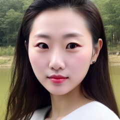gufeng,1girl\(Eyes\(Deep amber,crystal clear,long and delicate eyelashes\),Nose\(Elevated,a slightly upturned nose tip\),Lips\(Rosy color,defined lip line\),Hairstyle\(Black hair,smooth and shiny,slightly wavy at the ends\),Skin\(Fair,blemish-free,as delicate as porcelain\),Posture\(walking confidently and gracefully,light and graceful gait\),(look at viewer,floating hair,outdoor,upper body):1.53\),Background\((full moon,grassland,sky,forest,lake):1.5\),masterpiece,best quality,unreal engine 5 rendering,movie light,movie lens,movie special effects,detailed details,HDR,UHD,8K,CG wallpaper