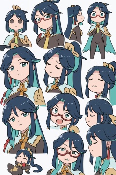 masterpiece, best quality, <lora:style05:1>,comic,board,(white background:1.2),(chibi:1.3),multiple view,face,smile,sad, open eyes,closed eyes, half-closed eyes, angry, ^_^,:3, <lora:xianyun-v2:1.2>,multiple girls,(hair ornament:1.4),multicolored hair,very long hair, ponytail,green eyes,(red glasses:1.2),under-rim eyewear, earrings, tassel,jewelry, profile, bodysuit, capelet,