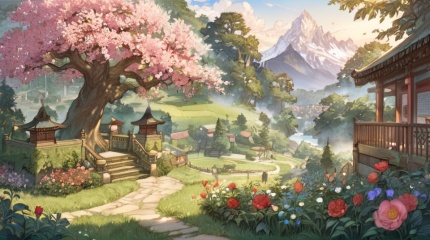 (best quality), ((masterpiece)), (highres), illustration, original, extremely detailed, <lora:NO Name Art:0.7>flower, 1girl, scenery, tree
