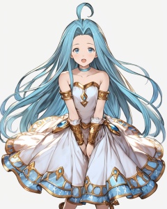 (best quality), ((masterpiece)), (highres), illustration, original, extremely detailed, <lora:JTのGame Character XL:0.7>1girl, lyria \(granblue fantasy\), long hair, solo, dress, blue eyes, white dress, blue hair, very long hair, choker, open mouth, looking at viewer, bare shoulders, ahoge, thighlet, transparent background, collarbone, armlet, bridal gauntlets, :o, white background, see-through, simple background