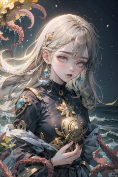 best quality,Amazing,Beautiful golden eyes,finely detail,Depth of field,extremely detailed CG unity 8k wallpaper,(1 girl :1.5),Deep sea background,jellyfish,masterpiece,fluttered detailed splashs, beautiful detailed water,cosmic eyes,Shock sensation,(realistic :0.5),octopus,original