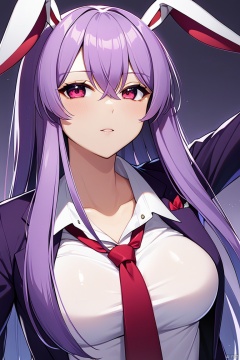 reisen_udongein_inaba_touhou,udongein_inaba_touhou, reisen_udongein_inaba_touhou, 1girl, red_necktie, blazer, white_shirt,long_sleeves