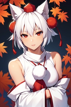 inubashiri_momiji_touhou,momiji_touhou, inubashiri_momiji_touhou, 1girl, detached_sleeves, bare_shoulders, pom_pom_,clothes