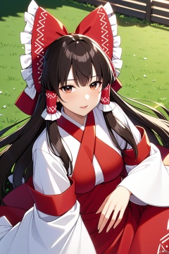 hakurei_reimu_touhou,reimu_touhou, hakurei_reimu_touhou, 1girl, detached_sleeves, hair_tubes, wide_sleeves, ribbon,red_skirt