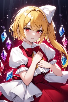 flandre_scarlet_touhou,scarlet_touhou, flandre_scarlet_touhou, 1girl, crystal, puffy_short_sleeves, white_shirt,red_vest