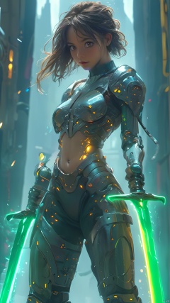 , mecha, Realistic, (wielding dual swords:1.2), hold dual swords beyond head.