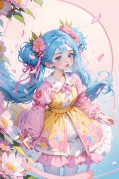 (masterpiece, high quality, highres,illustration),blurry background,cowboy shot,spring \(season\),(no light:1.1),(temptation:1.2),elegance,(1loli:1.1),(very long hair:1.1),(blush:0.7),floating hair,ahoge,deep sky,star \(sky\),(summer (Floral:1.2) dress:1.1),outline,(see-through:0.85),shining,low twintails,(polychromatic peony:1.15),Movie poster,(colorful:1.1),ornament,petals,(pantyhose:1.1),ribbon,Colorful hair,blue hair,pink hair,