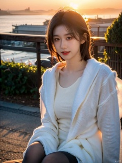 ((sunset)),volumetric fog, outdoors, backlight, boyfriend, pantyhose, , 1girl, tutututu, gufengsw001, tang