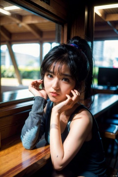 {masterpiece},{{best quality}},official art,{extremely detailed CG unity 8k wallpaper}, in hawaii, comic, girl, {solo}, {{mature female}}, {mature}, {milf},{{detailed background}},cyberpunk city,detailed manga illustration, {{{mecha girl}}},medium hair, orange hair,parted bangs, looking at viewer,{dynamic pose},expressionless,{beautiful detailed eyes},tsurime, red eyes, combat suit,{taut clothes},{leggings},combat boots,laxet glove,flat_chest,{ray tracing},ponytail,,