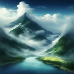 <lora:Artist - Sakimichan:1>,:Artist - Sakimichan,scenery, cloud, no humans, sky, mountain, outdoors, cloudy sky, landscape, water, river, fog