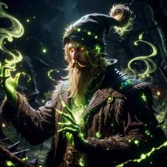 <lora:AcidMagic-22:0.9>,AcidMagic , fantasy, toxic corrosion , acid aura,wizard casting a spell, at the forest , beard,  glowing eyes,