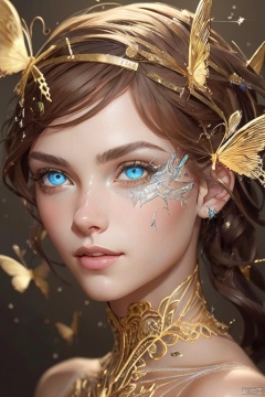 8k portrait of beautiful cyborg with brown hair, intricate, elegant, highly detailed, majestic, digital photography, art by artgerm and ruan jia and greg rutkowski surreal painting gold butterfly filigree, broken glass, (masterpiece, sidelighting, finely detailed beautiful eyes:1.2), hdr,