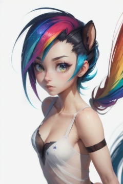 masterpiece,best quality, highly detailed, rainbow dash,1girl,solo,personification,looking at viewer,simple background,white background, girl