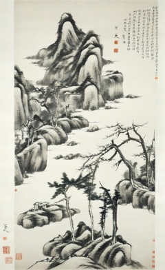 <lora:八大山人画风-000009:0.8>,no humans,tree,monochrome,rock,traditional media,scenery,the art of chinese calligraphy,ink wash,traditional,(mountain-water),calligraphy,seal art,asian art,paper,artistic composition,vertical layout,fine brushwork,nature scene,trees,rocks,cliffs,serenity,cultural heritage.,Chinese text,ink wash painting,traditional chinese painting,