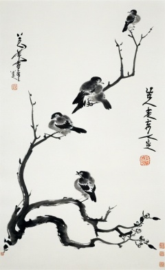 <lora:八大山人画风-000009:0.8>,no humans,branch,two birds,chinese text,tree,animal focus,animal,monochrome,traditional media,the art of chinese calligraphy,orchid,brush strokes,traditional art,white background,asian culture,artistic seal,minimalistic,black and white,calligraphy,flora,paper texture,vertical composition,Chinese text,ink wash painting,traditional chinese painting,