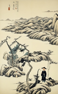 <lora:八大山人画风-000009:0.8>,chinese Landscape painting,highres,looking_at_viewer,1boy,