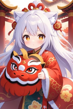1girl, solo, , (masterpiece), (best quality), (\shi shi ru yi\),Lion dance,(very_long_hair,:1.3)