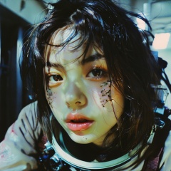 guaiguailuli girl, natural lips,extended spacewalk capability,scampering,In the style of Urban horror,science fiction,medium-length hair,natural patterns,Insane asylum young,sexy,film grain texture,analog photography aesthetic,visual storytelling,dynamic composition,looking at viewer,eye contact,, <lora:poaklggllgirl-000007:0.8>