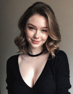 instagram photo, photo of 23 y.o Chloe in black sweater, cleavage, pale skin, (smile:0.4), hard shadows