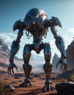 cgi, unreal engine 5, high quality render of cybernetic creature, perfect environment, unknown planet landscape, sci-fi, artstation, extremely detailed
