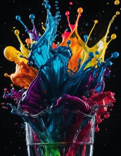 high detailed cinematic photo, breathtaking, splash of colorful liquids, perfect lighting, dark shot