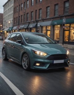 aesthetic photo of Ford Focus, in motion, perfect lighting, vibrant, high detailed, epic, motion blur
