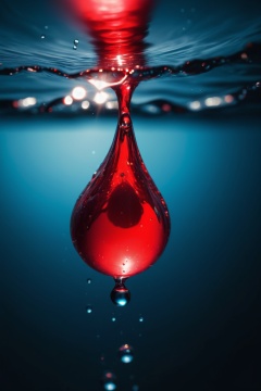 hyperrealistic macro shot of a red blood drop splash in blue water, shallow dof, dramatic lighting, magnificent, celestial, ethereal, epic, magical, dreamy, chiaroscuro, atmospheric lighting, macro, extreme details,