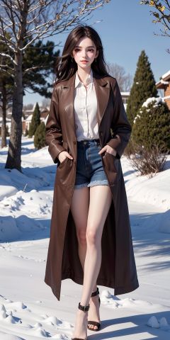 1girl,solo,long hair,smile,jewelry,brown hair,earrings,snow,coat,grin,looking at viewer,tree,hands in pockets,brown eyes,winter,outdoors,, (raw photo:1.2),((photorealistic:1.4))best quality,masterpiece,illustration,an extremely delicate and beautiful,extremely detailed,CG,unity,8k wallpaper,Amazing,finely detail,masterpiece,best quality,official art,extremely detailed CG unity 8k wallpaper,absurdres,incredibly absurdres,huge filesize,ultra-detailed,highres,extremely detailed,beautiful detailed girl,cinematic lighting,1girl,pale skin,tall female,(perfect body shape),skinny body,Slender legs,, pale skin,tall man,long legs,thin leg,