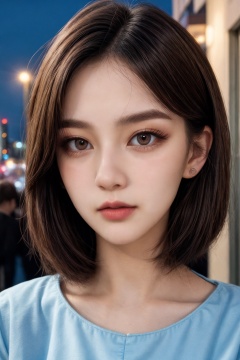 instagram photo, closeup face photo of 18 y.o woman in dress, beautiful face, makeup, night city street,