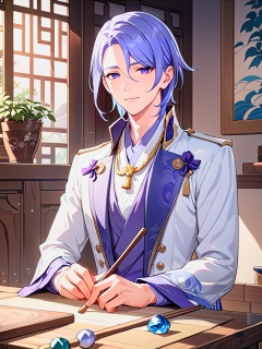(Arts and Crafts Movement),anime,(masterpiece, top quality, best quality, official art, beautiful and aesthetic:1.2),1boy,kamisato ayato,genshin impact,