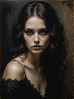 In Casey Baugh's evocative style, a Gothic girl emerges from the depths of darkness, her essence a captivating blend of mystery and allure. With piercing eyes and flowing ebony hair, she exudes an enigmatic presence that draws viewers into her world. Baugh's brushwork infuses the painting with a unique combination of realism and abstraction, highlighting the girl's delicate features and contrasting them against a backdrop of deep, rich hues. The interplay of light and shadow adds depth and dimension to the artwork, creating a hauntingly beautiful portrayal of this Gothic muse. Baugh's distinctive style captures the essence of the girl's enigmatic nature, inviting viewers to explore the depths of her soul