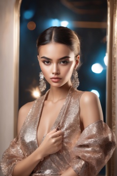 1girl,(model:1.2),fashionable and trendy attire,sleek hairstyle,confident and expressive pose,(holding a fashion accessory or item:1.3),professional photo studio background with lighting equipment,backdrop variations,and fashion props,dynamic and flattering lighting,(striking a pose:1.2),close-up shot,capturing the essence of style and elegance,nice hands,perfect hands,8k,Best quality,realistic style.,<lora:HandFineTuning_XL:0.5>,