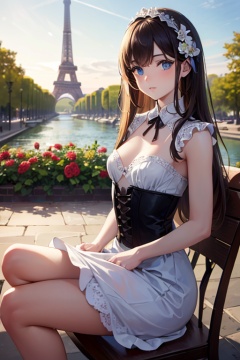 RAW,analog,Nikon Z 85mm,award winning glamour photograph,((best quality)),((masterpiece)),((realistic)),18th century,vintage image,gorgeous French woman wearing,lace dress and corset,wearing a crown,25 year old,(long brown hair),hazel eyes,small perky breasts,sitting outside at a Paris caf,eiffel tower in background,petite,((small breasts)),innocent,flower pedals in the air,(freckles:0.6),intricate details,highly detailed,sharp focus,professional,4k,spring flowers blooming,god rays,hand model,stunning blue eyes,petite,delicate,innocent,highres,detailed facial features,high detail,sharp focus,smooth,aesthetic,extremely detailed,photo_\(ultra\),photorealistic,realistic,post-processing,max detail,roughness,real life,ultra realistic,photorealism,photography,8k uhd,photography,SEMI-SILHOUETTE light,russian face,
